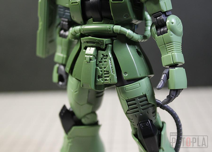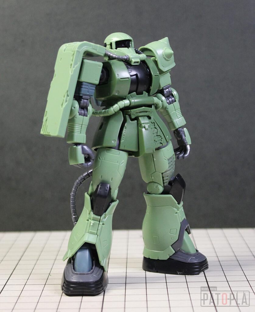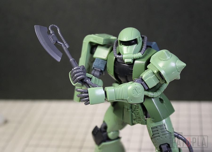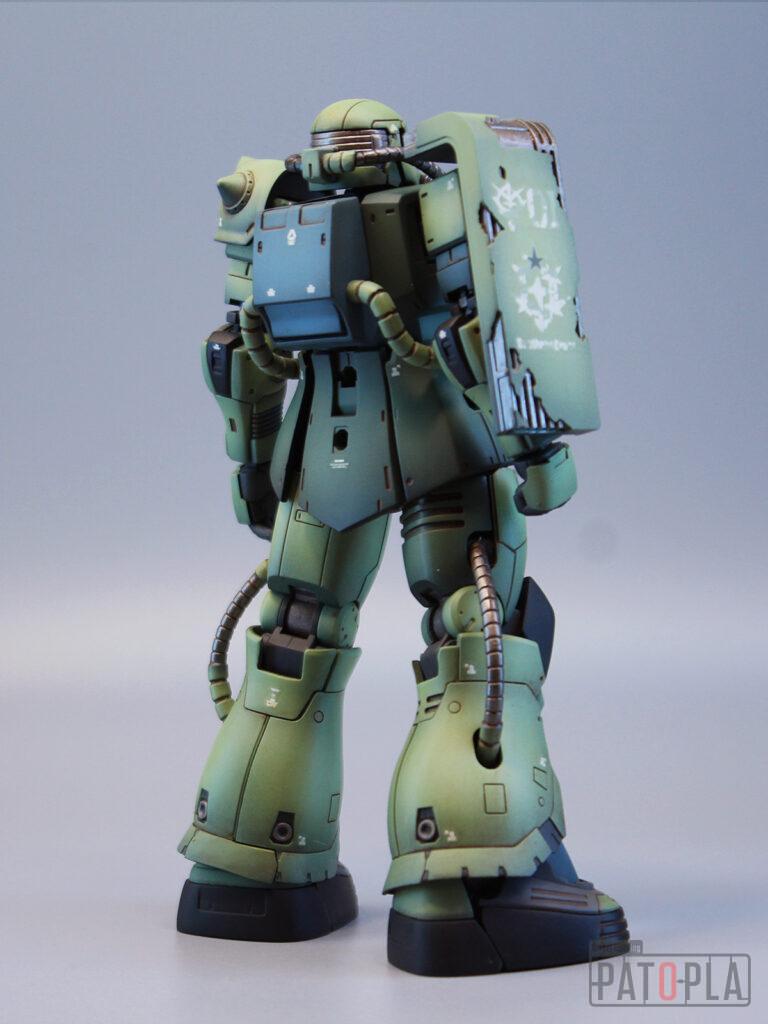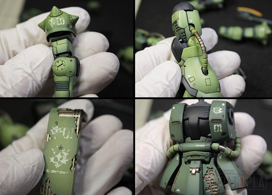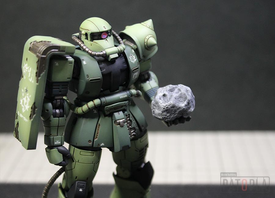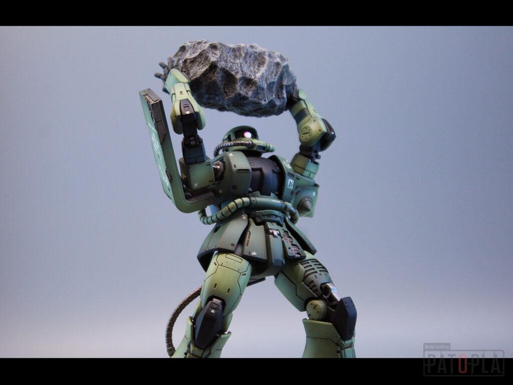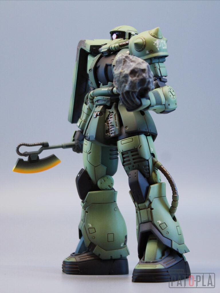 originザクがベースになっており、鼻が伸びたような顔が特徴的ですが、ところどころ装甲が破損してフレームが露出したようなディテールに変更されています。