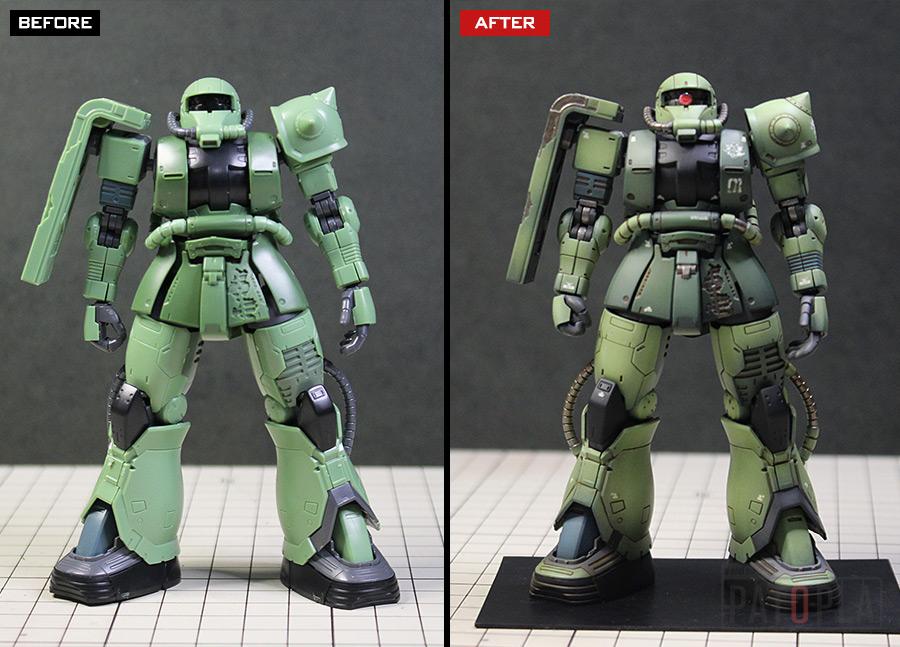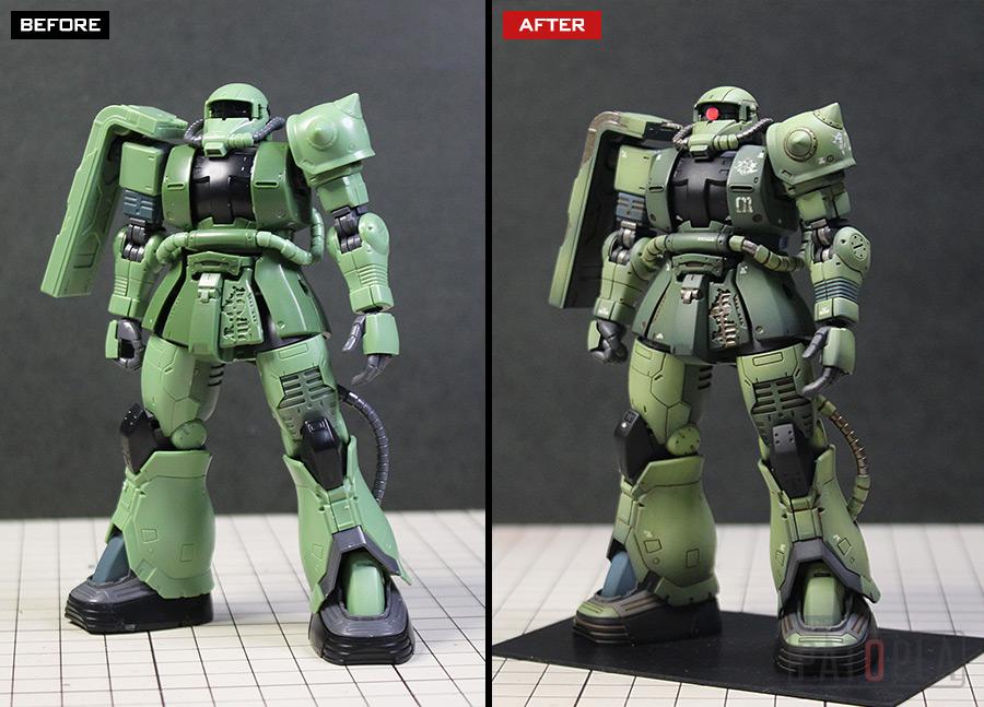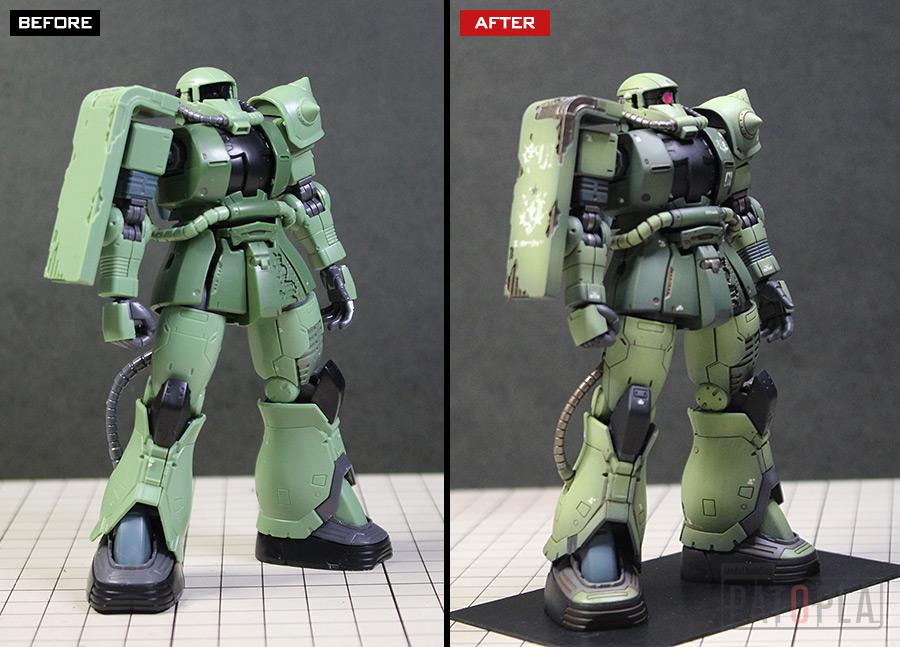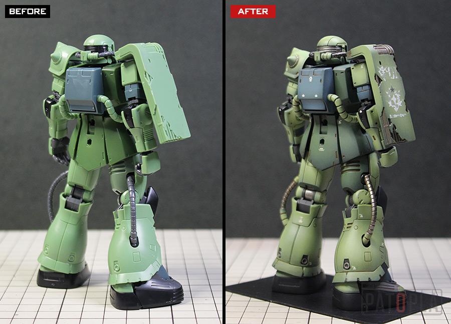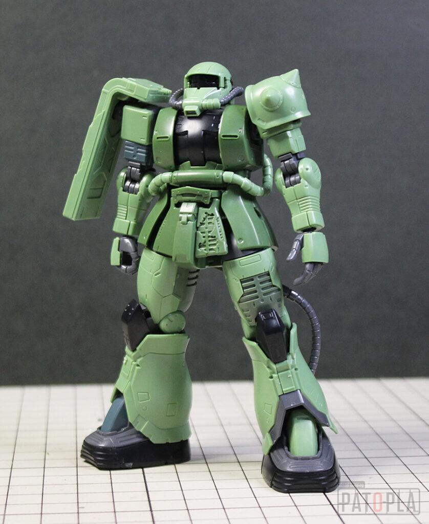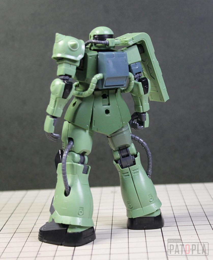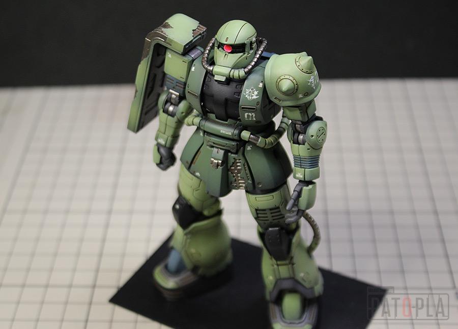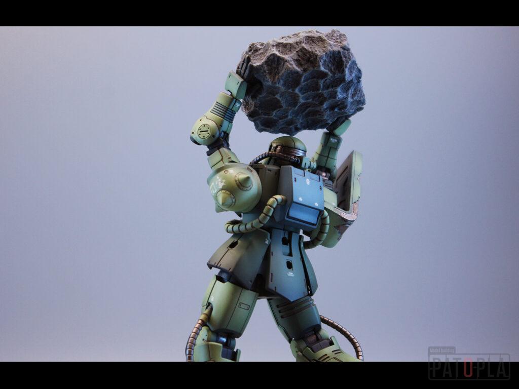 originザクがベースになっており、鼻が伸びたような顔が特徴的ですが、ところどころ装甲が破損してフレームが露出したようなディテールに変更されています。