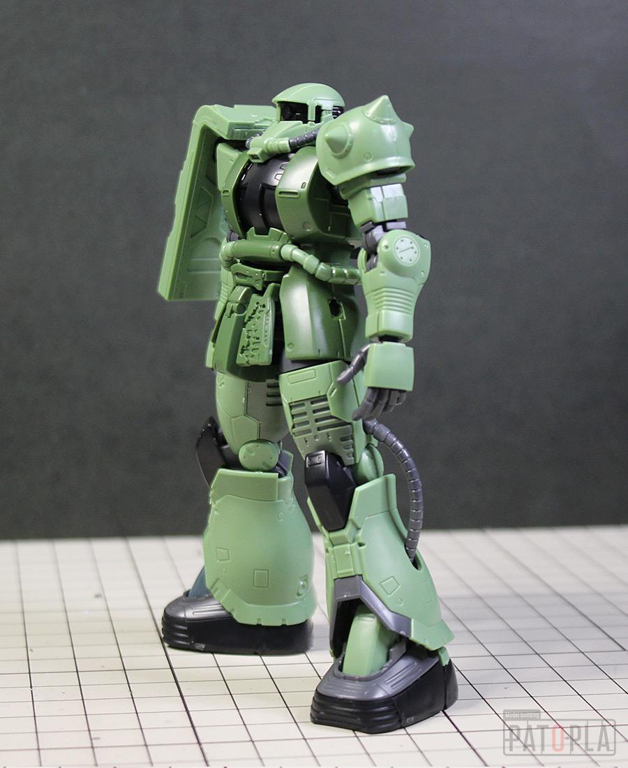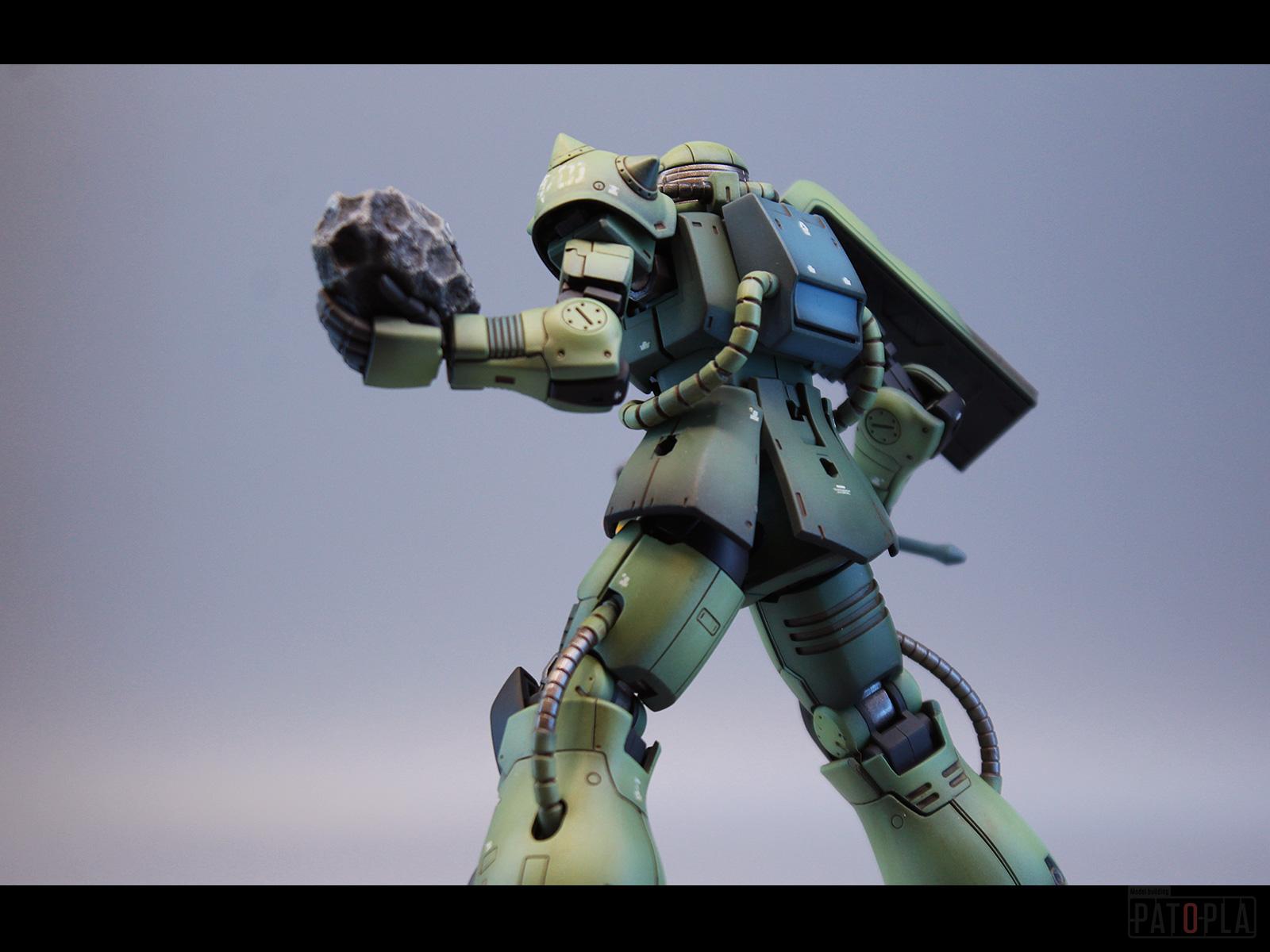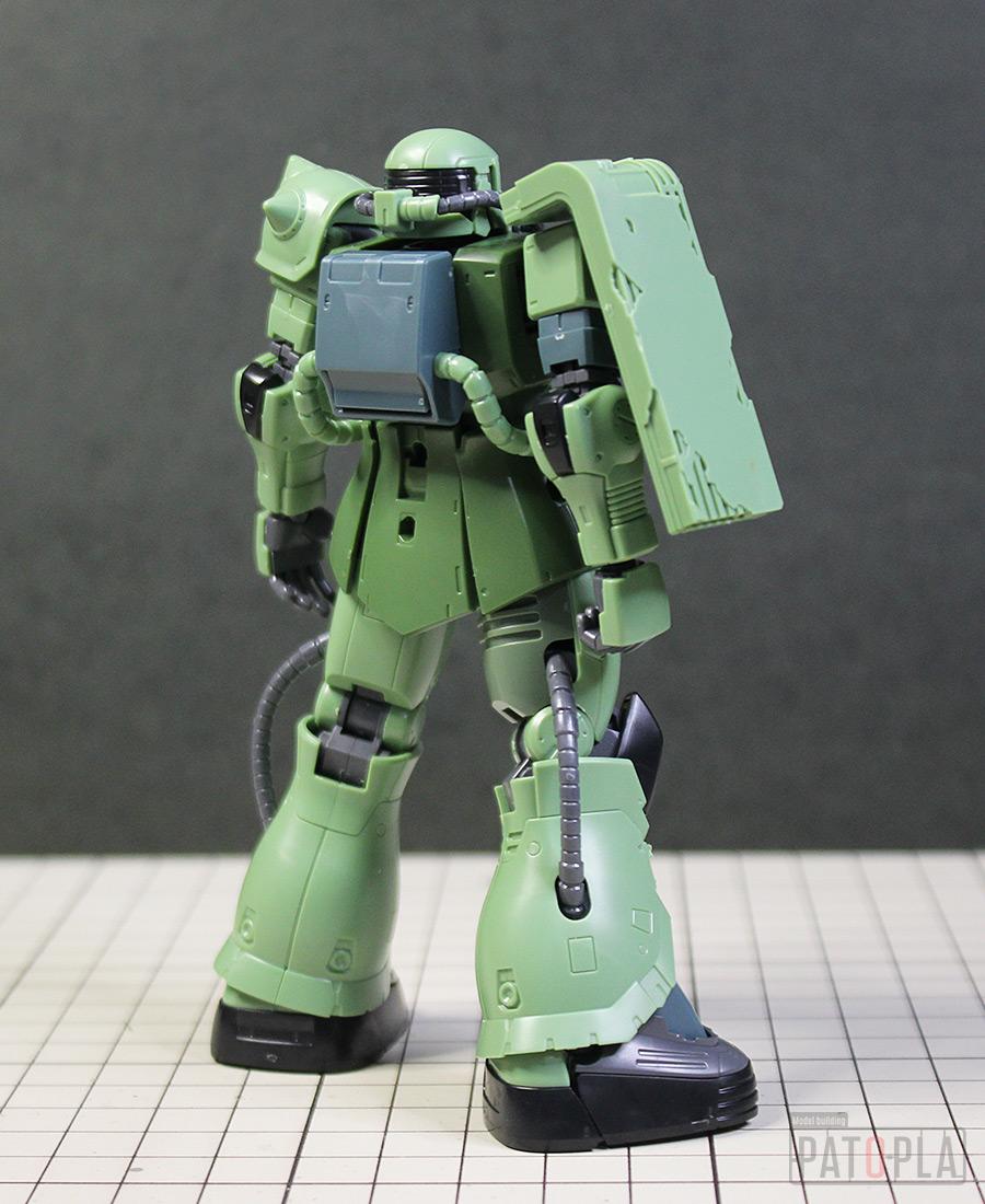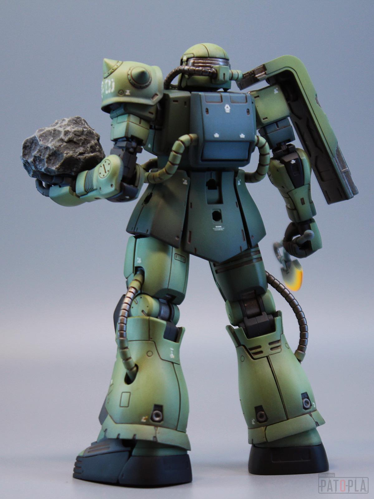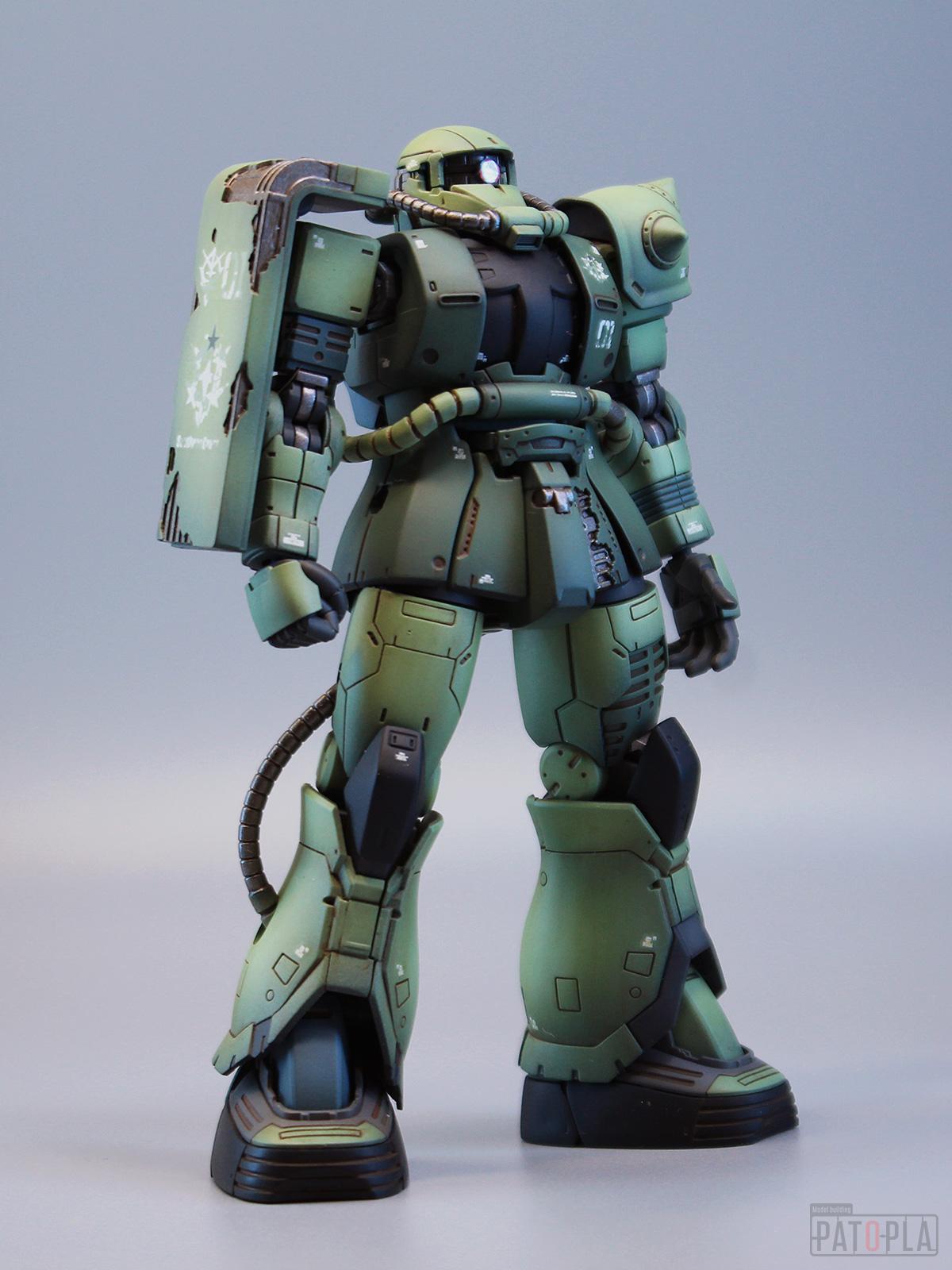 originザクがベースになっており、鼻が伸びたような顔が特徴的ですが、ところどころ装甲が破損してフレームが露出したようなディテールに変更されています。