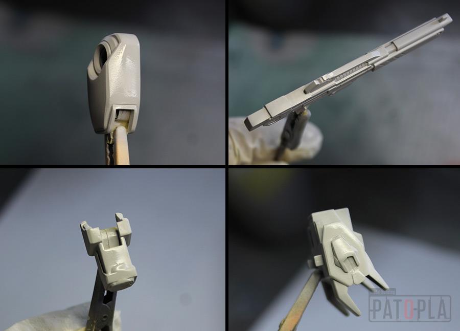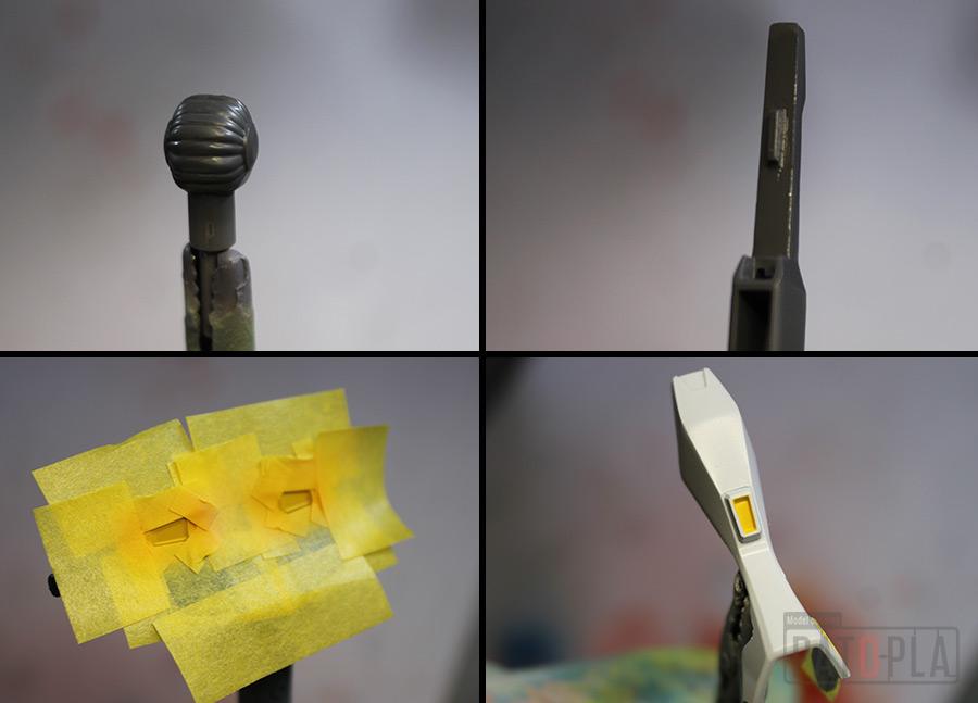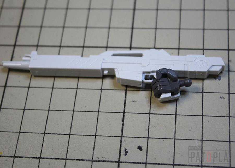 ビームライフルはHGUCνガンダム付属のものと同じ形なのですが、ハンドパーツが旧フォーマットであまり互換性がないため、保持しやすくなるように加工しています。