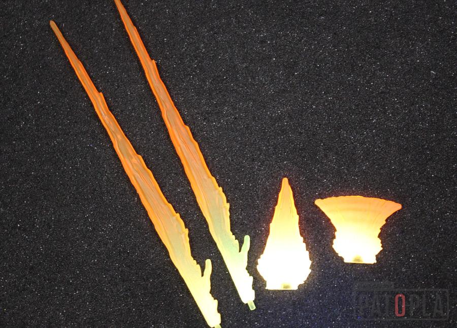 レンズ表現部やビームエフェクト等はUVライトの照射で発光します。