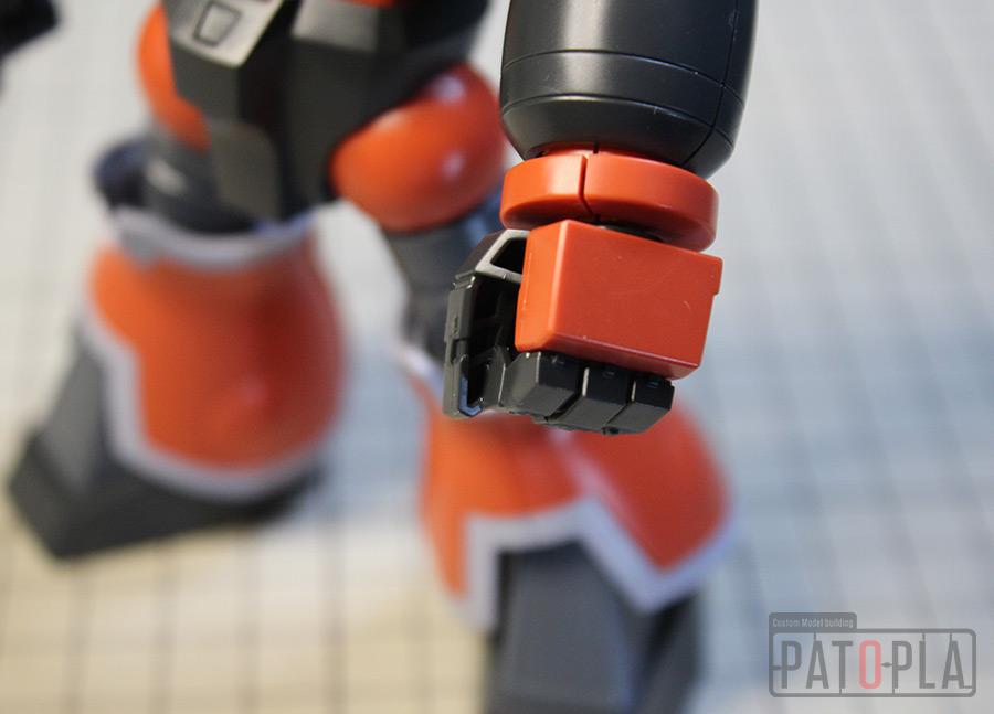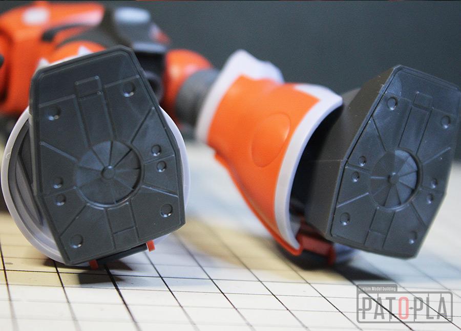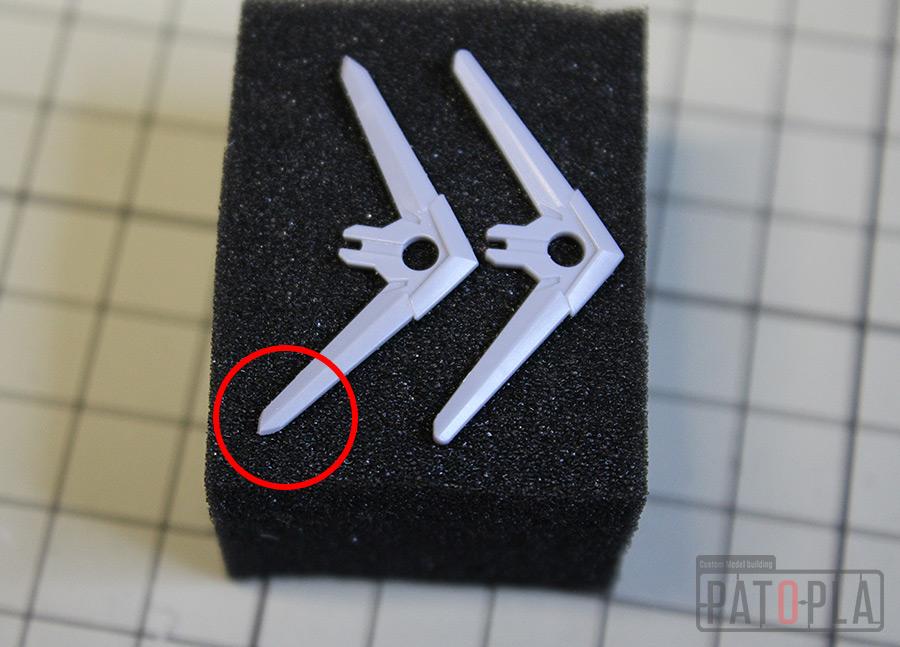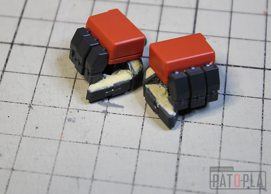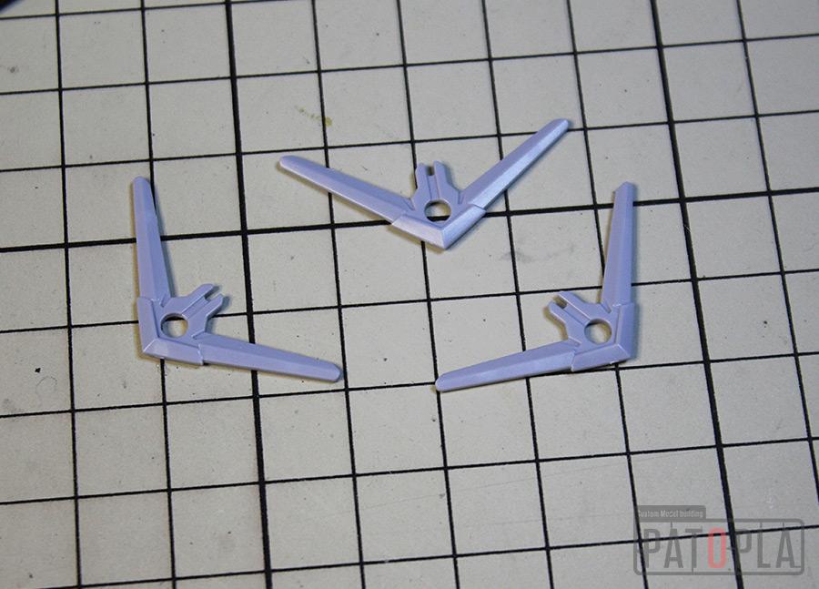その他、仮組時にきになった合わせ目や親指の肉抜き穴埋め、股関節やウェポンラッチパーツ等のクリアランス調整、ブーメランカッターの鋭利化等も行いました。