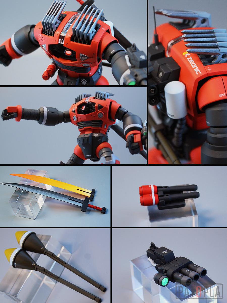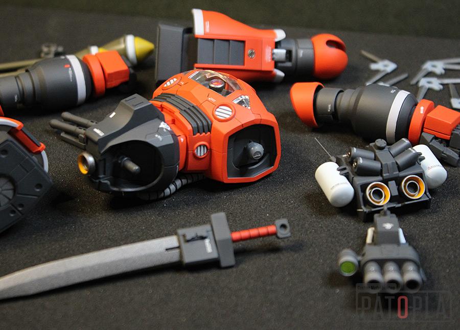 頭部のブーメラン・カッター10基やヒート・サーベル、シュツルムファウスト、アームパンチの延伸パーツ等豊富な武装が付属しています。