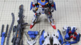 キット付属の手首パーツが非常に少なく、両手に武器を持たせるといった事ができなかったので、先日発売した30MMのオプションパーツから武器持ち用左手首を移植し、右手にハイパー・ビーム・サーベル、左手にダブル・ビーム・ライフルを持てるようにしました。