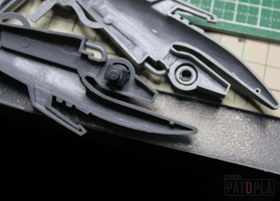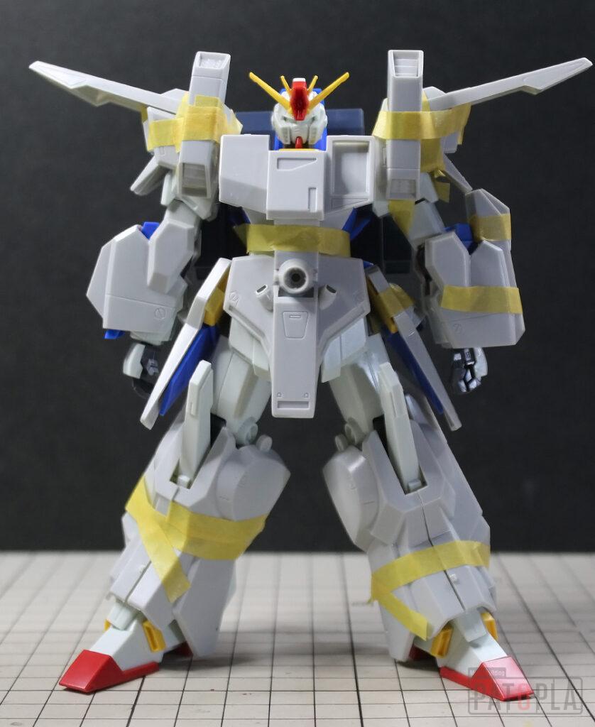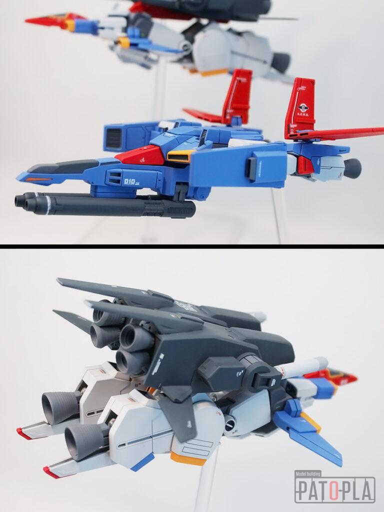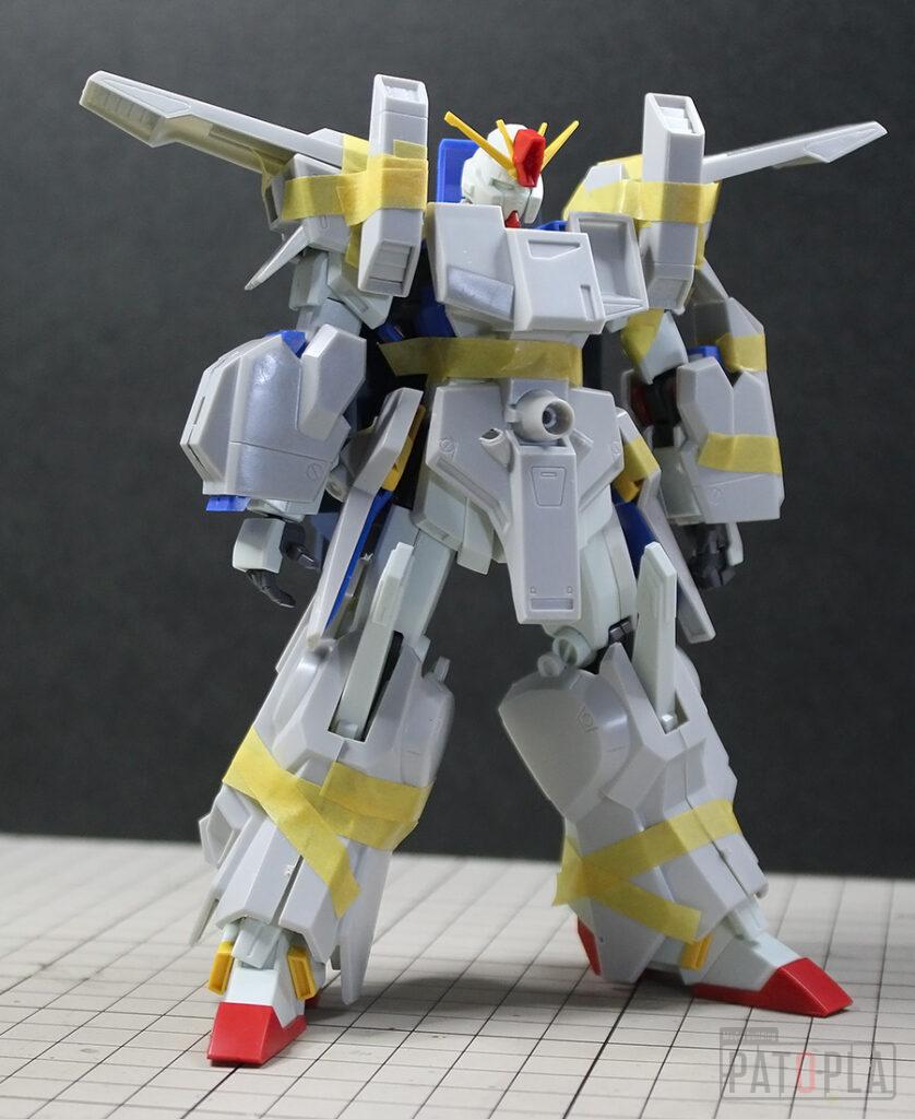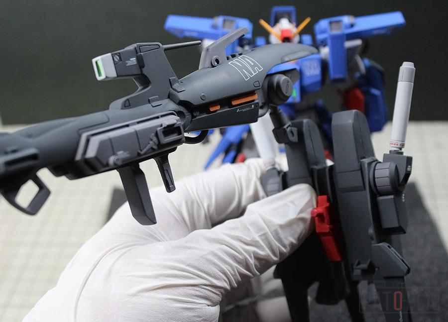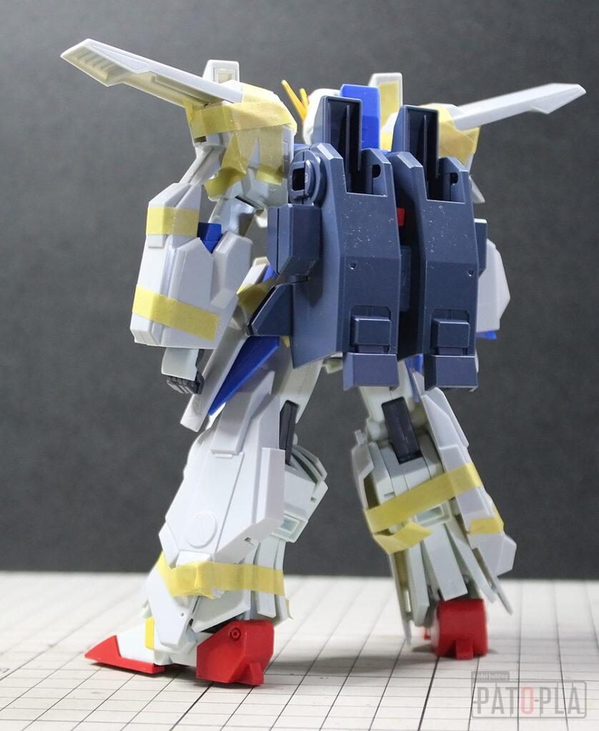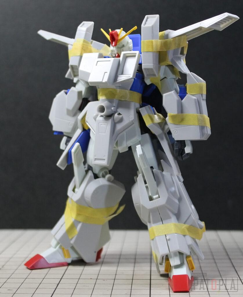 本体側に関しては、フルアーマー形態時の干渉を減らすための措置として、腕を前にあげられるようにバックパックを2mm後方へ移動、脚部の可動域を広げるために股や大腿部のパーツを加工しています。