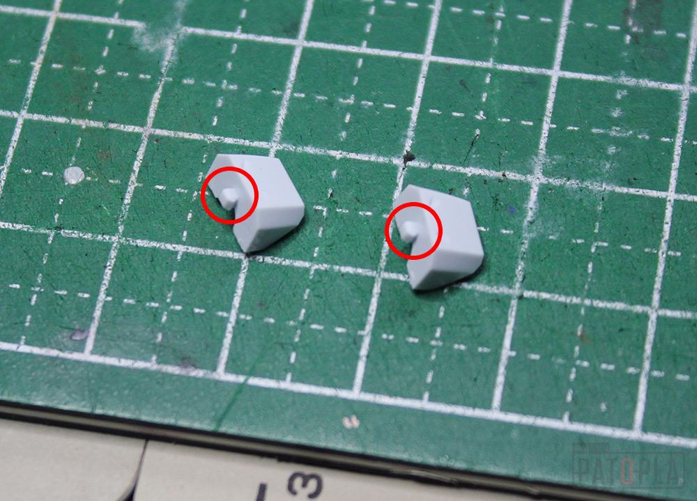 また、使用キット等によっては組み立て後にダボが露出してしまう事や、ポリキャップの受けの場合もあるので、行う場合はくれぐれも注意してください。