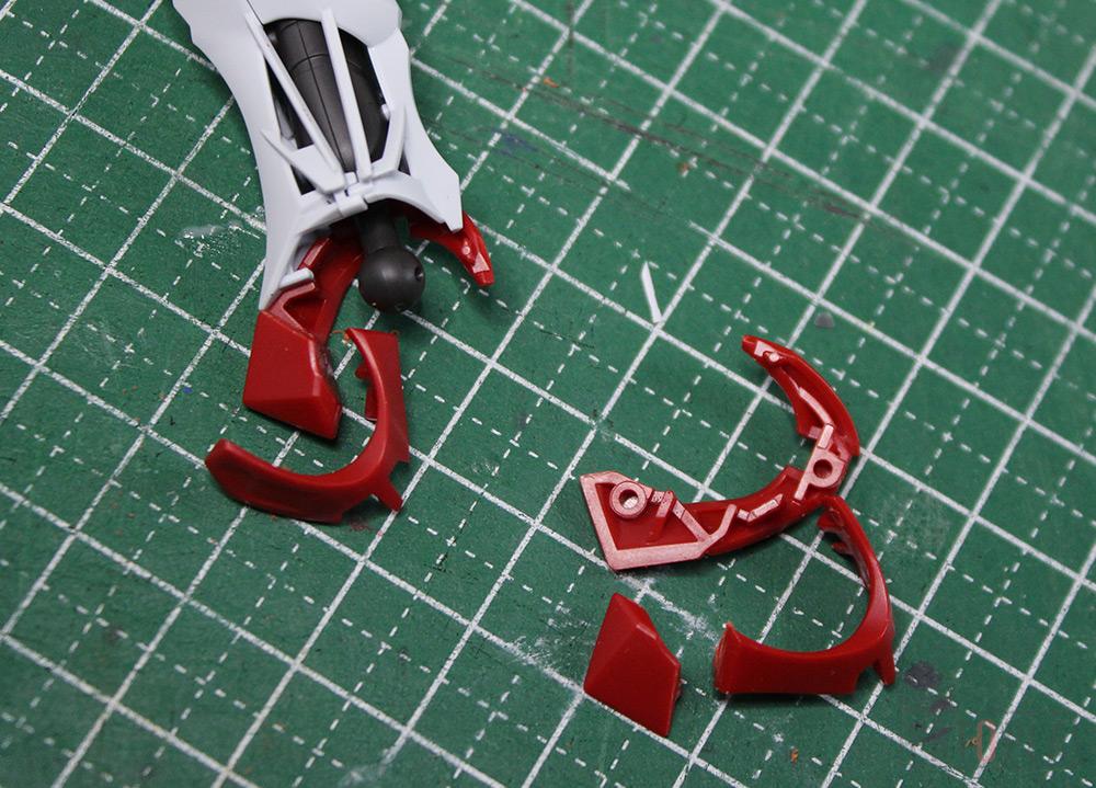 背中の赤いパーツ中央の合わせ目は段落ちモールドにしています。