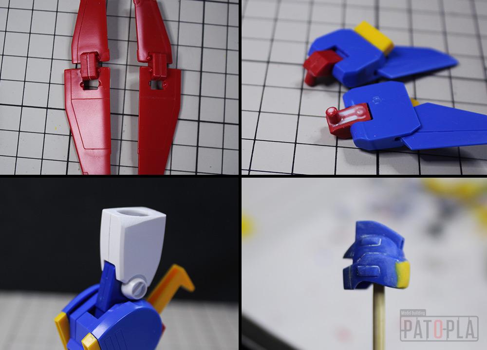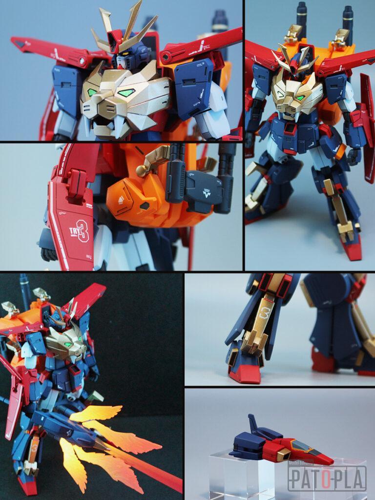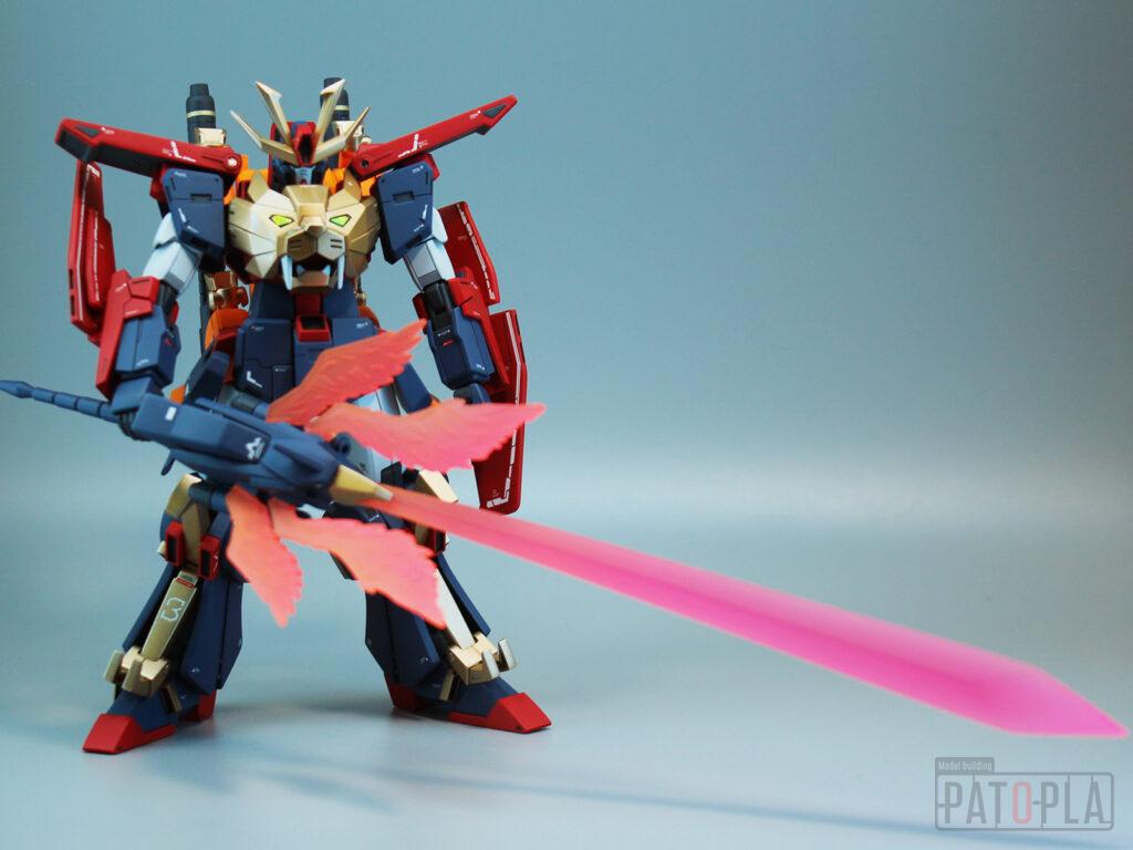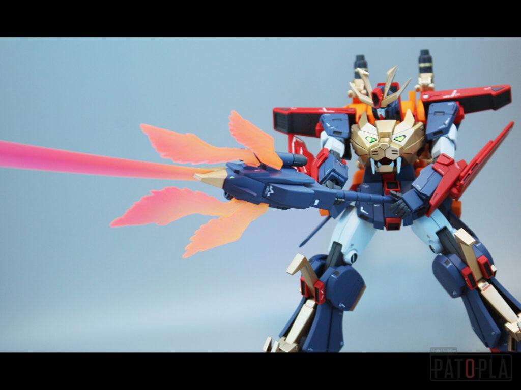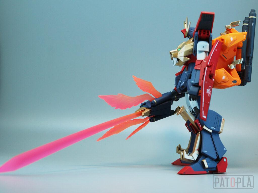 ソラトライオンの頭部や爪、超咆剣ハイパーミノフスキーの柄、バックパック、リクトライオンの胴体、脚部等に合わせ目がでたため、これらを除去したり、モールド化して目立たないようにしました。