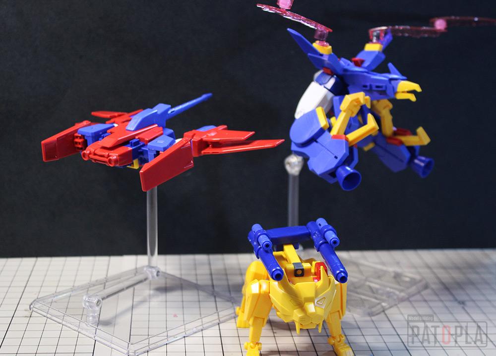 胸部やバックパックで構成されるライガー型のトライマシン「リクトライオン」、下半身や超咆剣ハイパーミノフスキーで構成される「ソラトライオン」、上半身と超咆剣ハイパーミノフスキーの柄の部分で構成される「ウミトライオン」です。