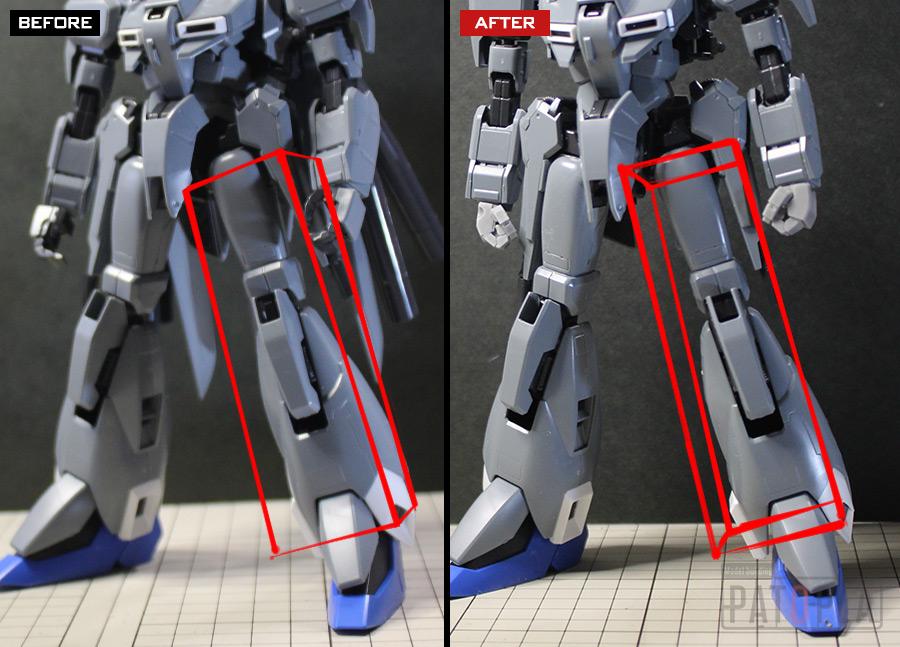 過去に製作したEx-Sガンダムのように膝に横ロール軸を入れる事も考えましたが、結局いれてもねじるのは10~20度程度なので、ジョイント部の角度を変更することにしました。