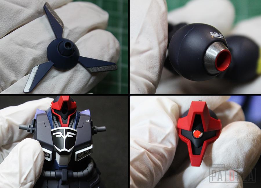 キットの出来が良くあまり気になる点はないのですが、ショルダーアーマーやバズーカの合わせ目が目立つので除去します。