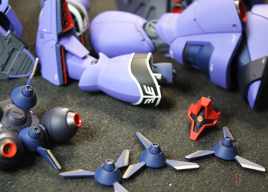 キットの出来が良くあまり気になる点はないのですが、ショルダーアーマーやバズーカの合わせ目が目立つので除去します。